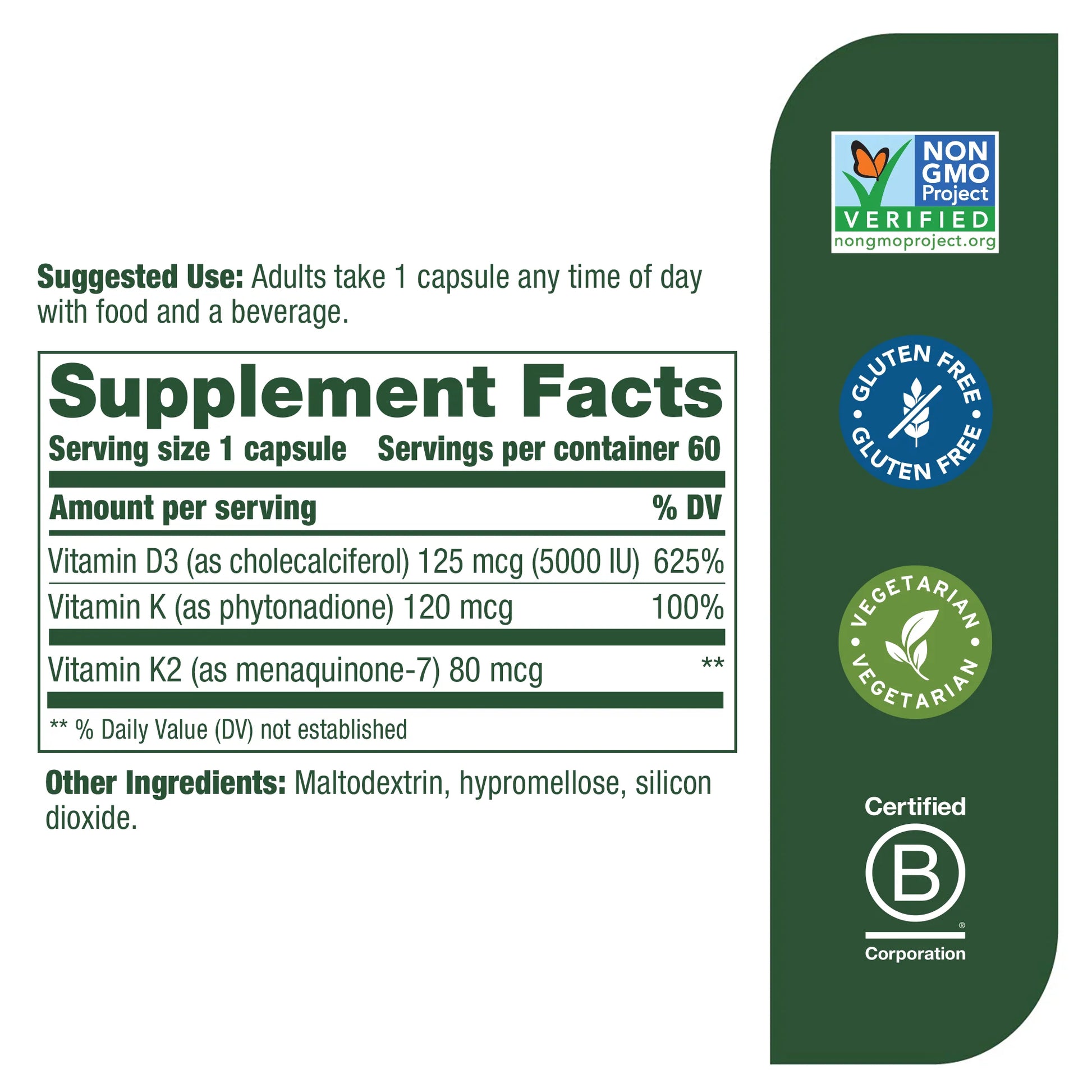 Vitamin D3 5000 IU (125 mcg) plus K & K2 60 Day