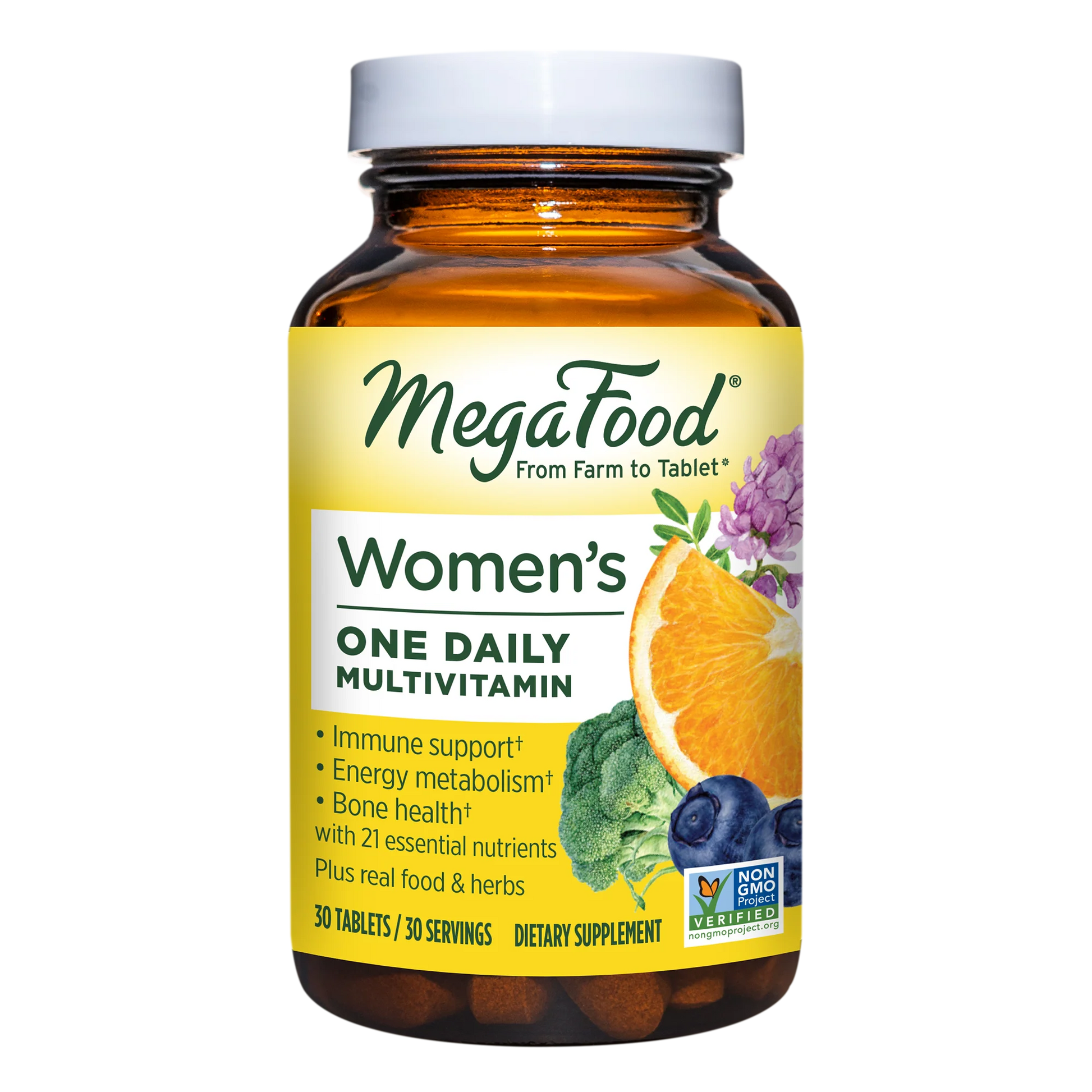 Our foundational one-daily multivitamin with 21 essential nutrients plus real food & herbs supports the unique nutritional needs of women. Includes vitamin C & zinc for immune support, B vitamins to support energy metabolism and vitamin D to support strong bones.